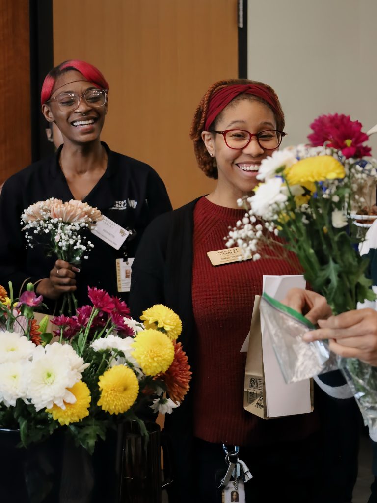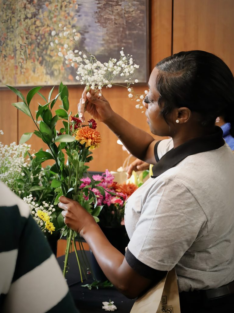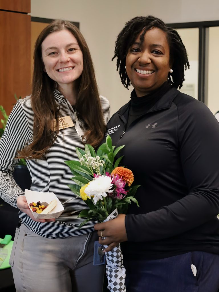 Hosted at the Sutton Center, this wellness event was designed as a quiet, restorative moment in the midst of busy days. A chance for our team to breathe, reset, and simply be. The Wake Line shuttled team members from across campus to tables filled with fresh flowers, goodie bags, and a spread of afternoon treats. Our registered dietitian, Andrea, led a mindful eating exercise that encouraged everyone to slow down and reconnect with the simple joy of food.