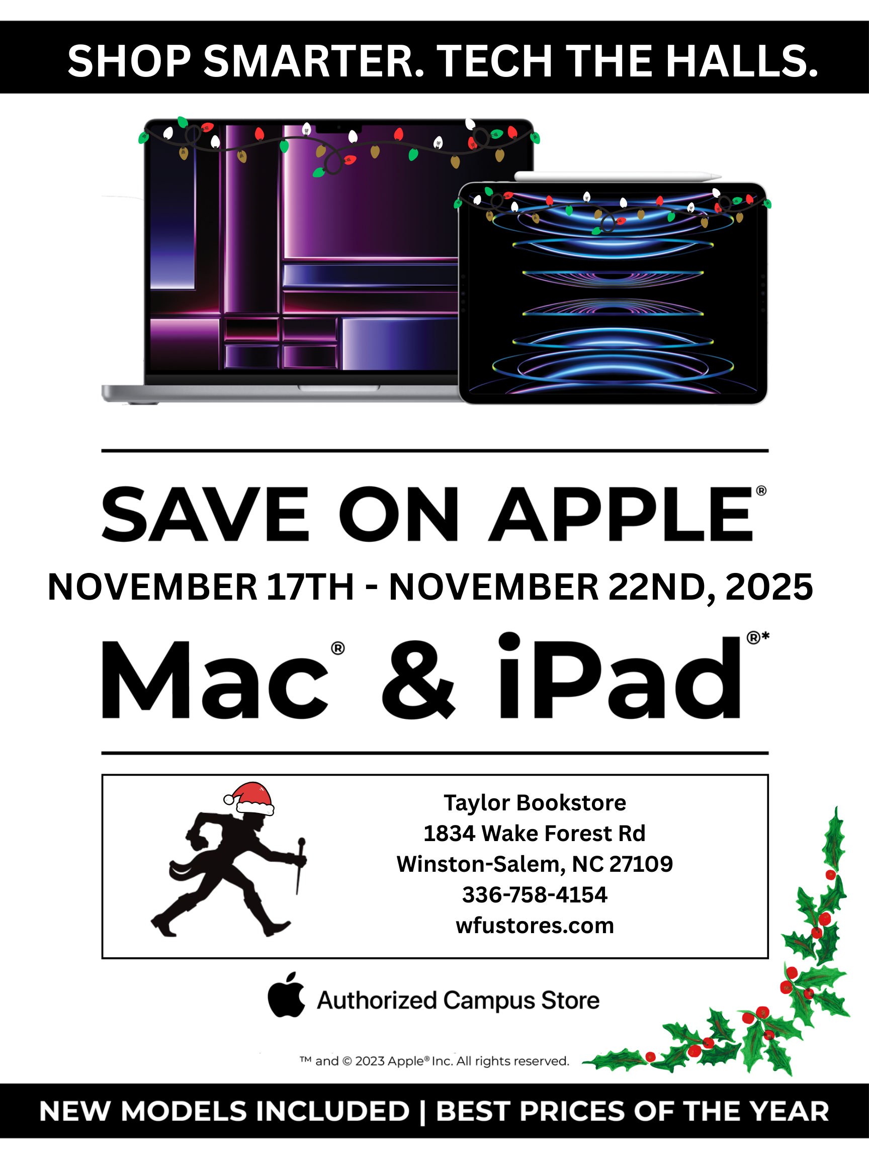 Tech the Halls runs November 17th – November 22nd, 2025, featuring incredible savings on Mac® and iPad®, including the newest models up to 10% off. Don’t miss this event!
